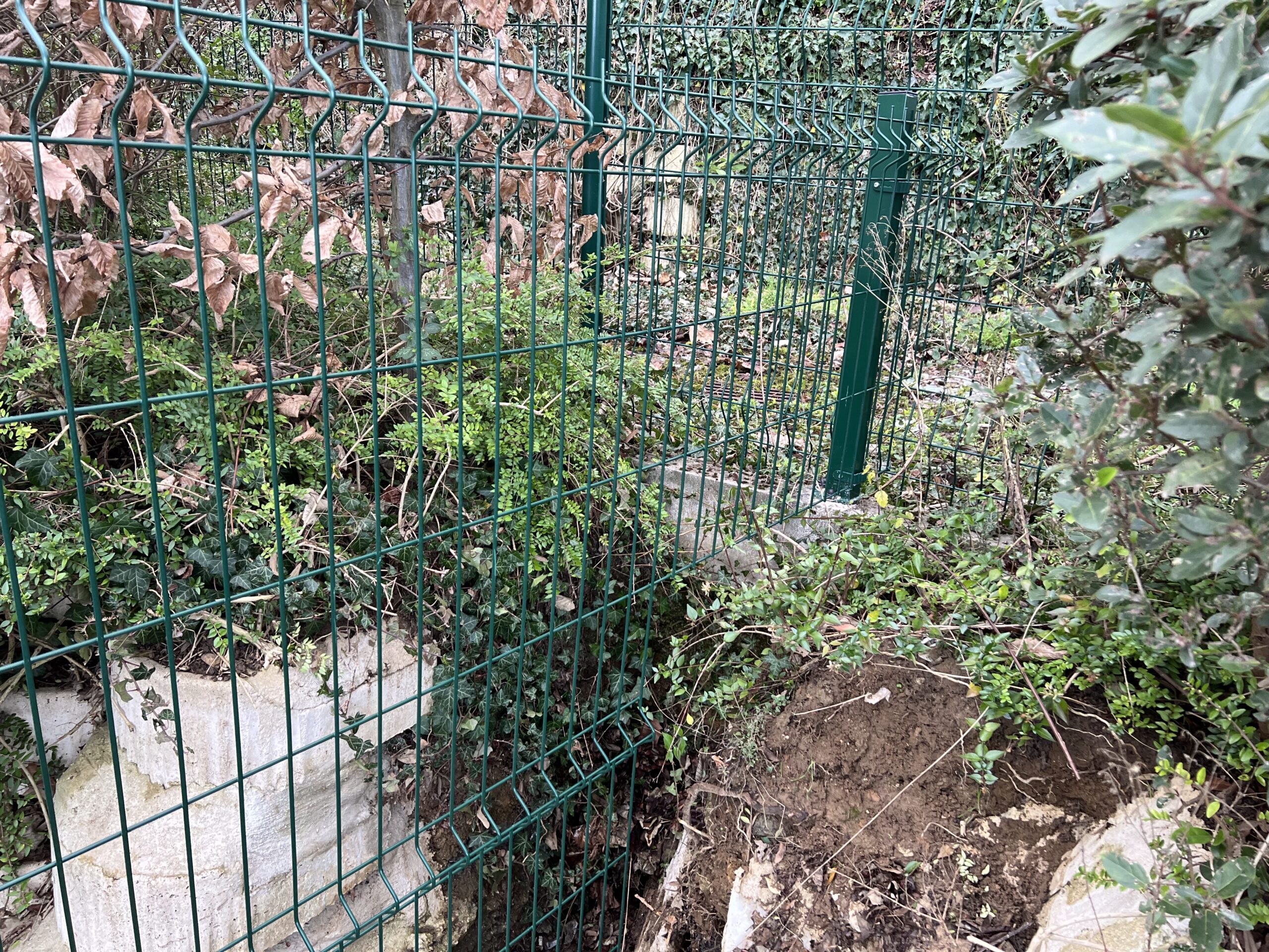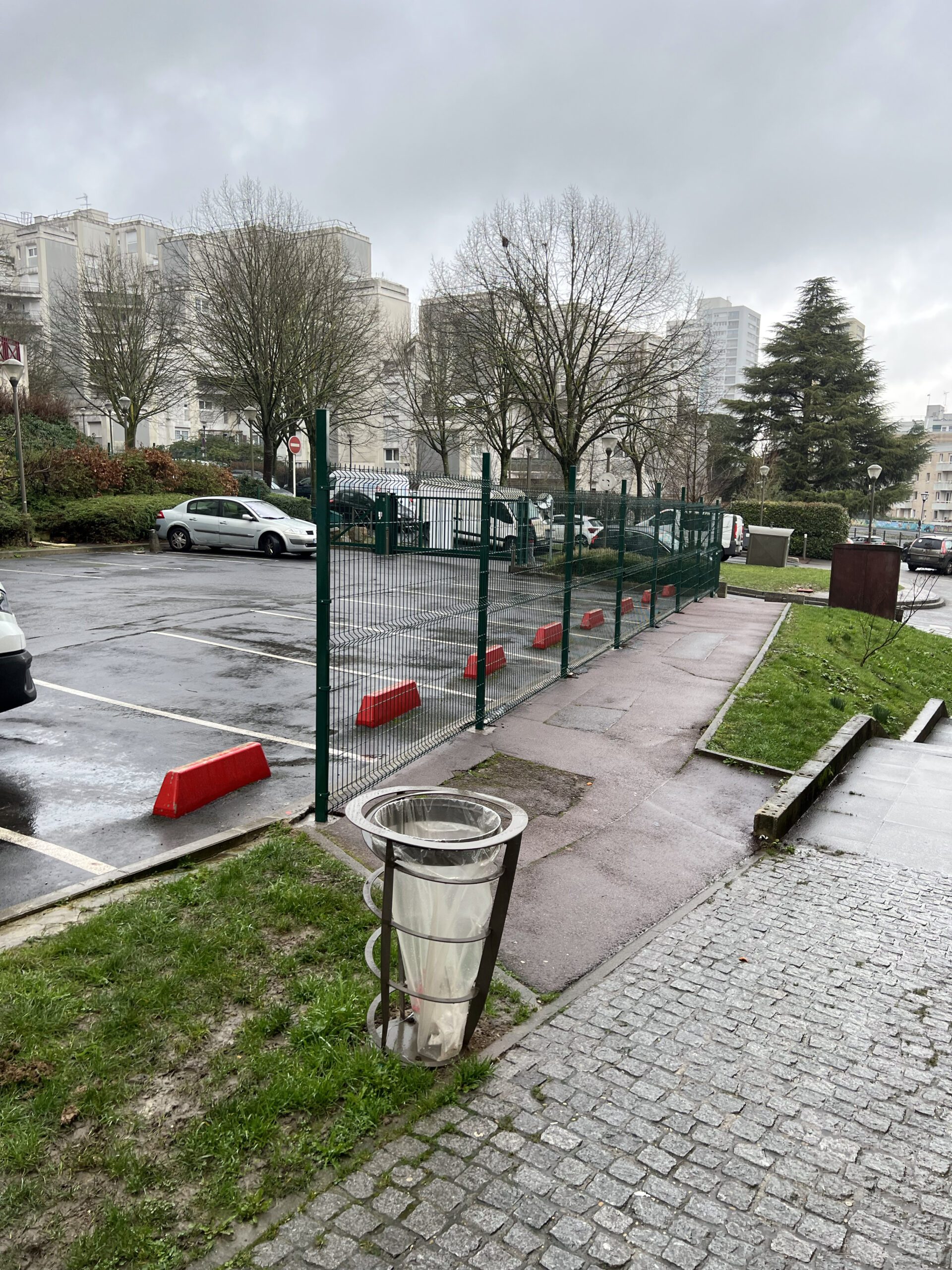 Nous venons de lancer la mise en place de la clôture autour du parking Tilleul.